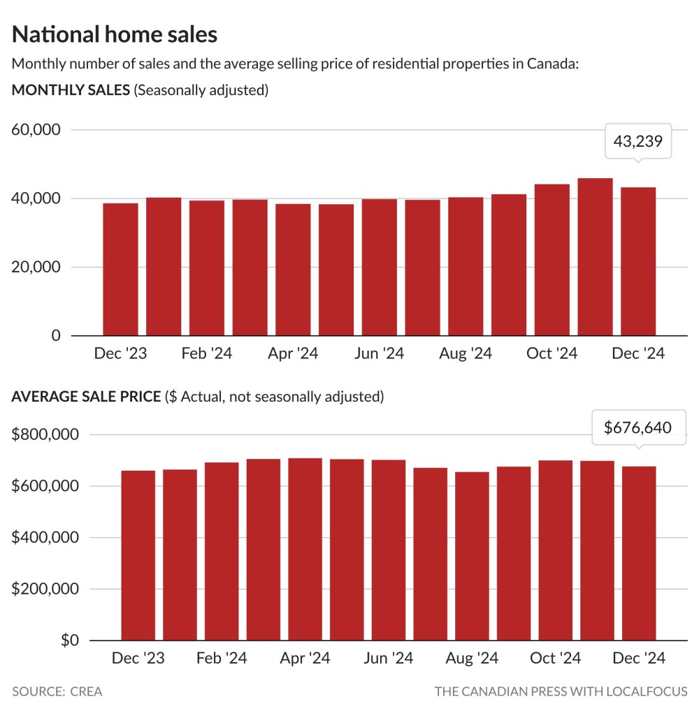 In its report for December, CREA said 27,643 homes changed hands for the final month of 2024 compared with 23,190 in December 2023, marking a 19.2 per cent increase. That followed a 26 per cent year-over-year rise in November and a 30 per cent increase of sales in October.