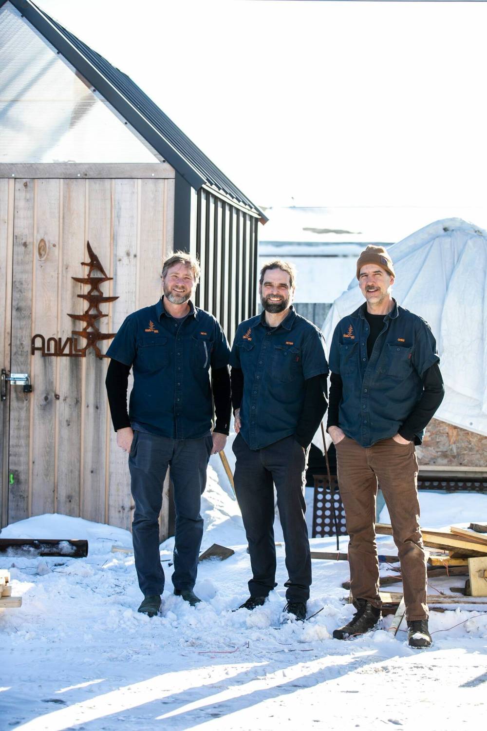 MIKAELA MACKENZIE / FREE PRESS Anvil Tree co-owners Reyn Buhler (left), Peter Hargraves, and Chris Pancoe in their workshop yard in St. Vital.