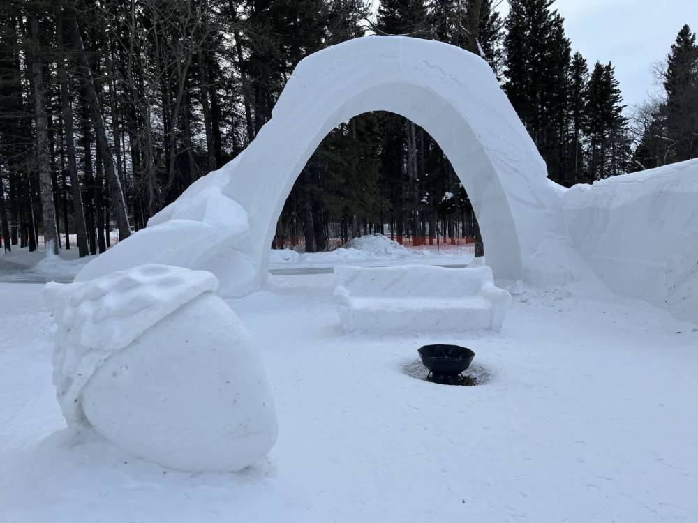SUPPLIED Anvil Tree built a snow pavilion at Riding Mountain National Park that features multiple sculptures, including a catenary arch, “snowfa” — a sofa made from snow, and a strawberry.