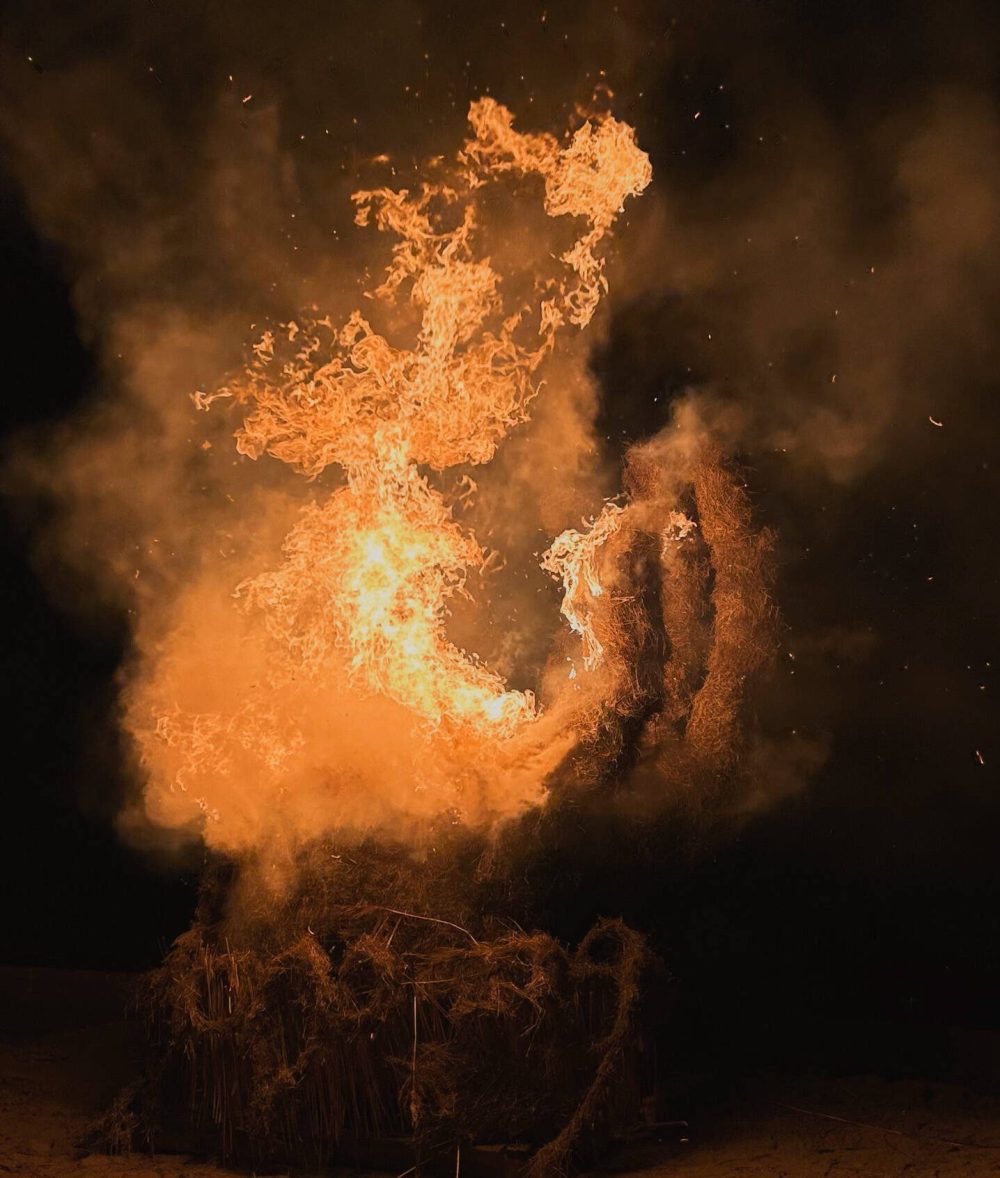 SUPPLIED Pancoe's straw sculpture was set aflame as part of the festivities.