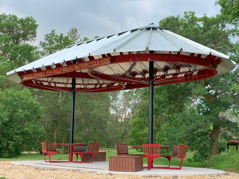 SUPPLIED A picnic shelter built by Anvil Tree in Winnipeg Beach commemorates Sadie Grimm, winner of the 1914 Manitoba Motorcycle Club’s gold medal.