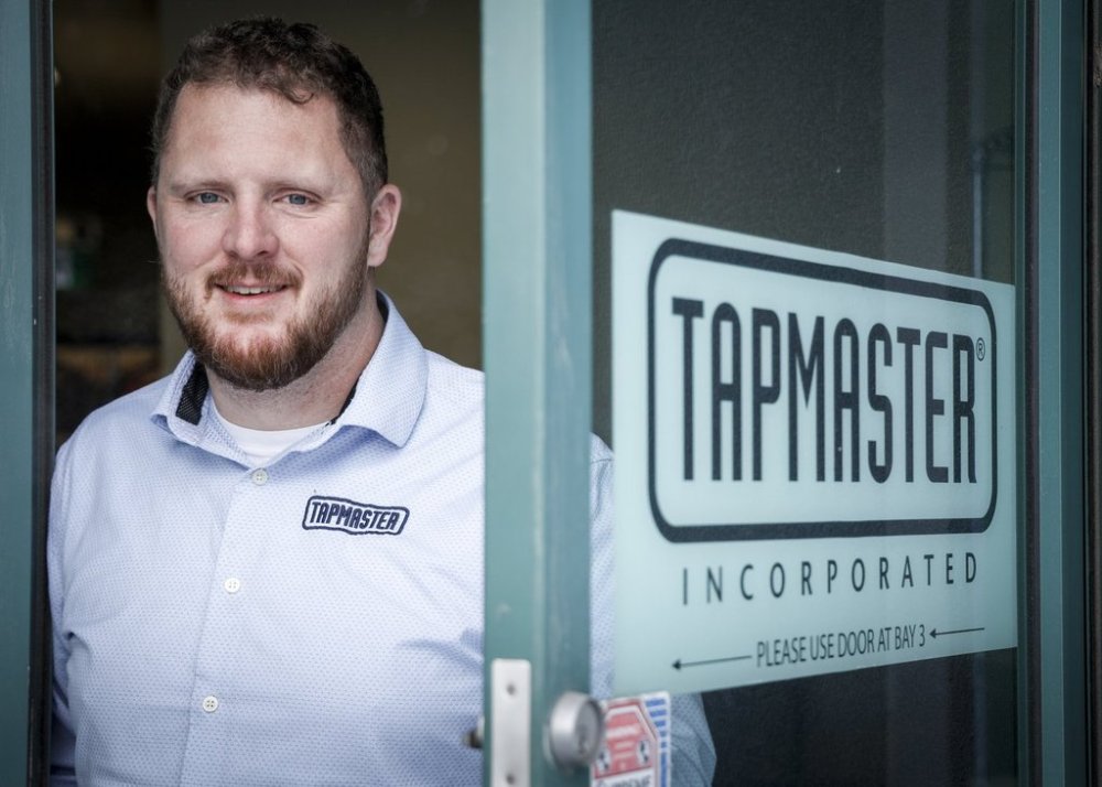 Tapmaster president Tyler Pubben, at his company's manufacturing facility in Calgary, Alta., Tuesday, Feb. 4, 2025. THE CANADIAN PRESS/Jeff McIntosh