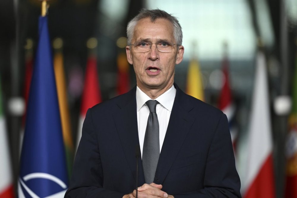 FILE -NATO Secretary General Jens Stoltenberg makes statements during a transition ceremony at NATO headquarters in Brussels, Belgium, Oct. 1, 2024. (AP Photo/Harry Nakos), File)