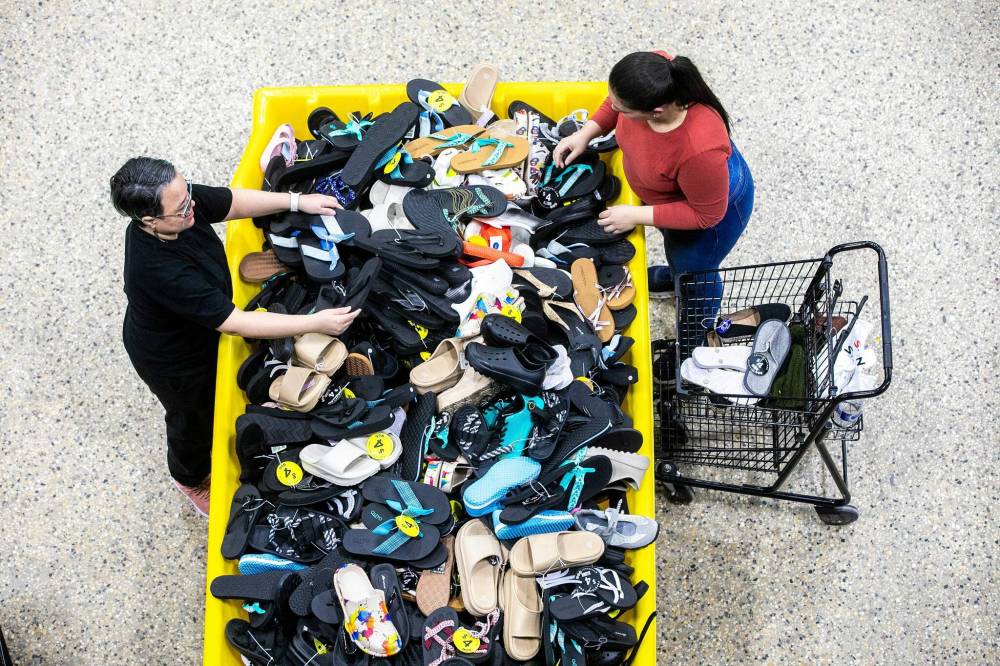 She wheeled a cart around the temporary store Monday, scouting for shoes. There wasn’t a lineup to enter then. Still, more than 100 people were browsing the space before noon.