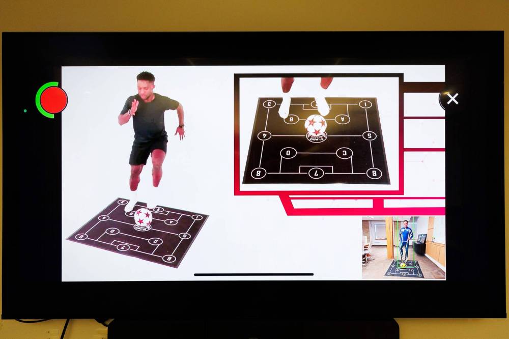 As players mimic the movements on the display screen using the training mat, the app uses the smartphone’s camera to analyze movements, helping to track and improve soccer technique over time.