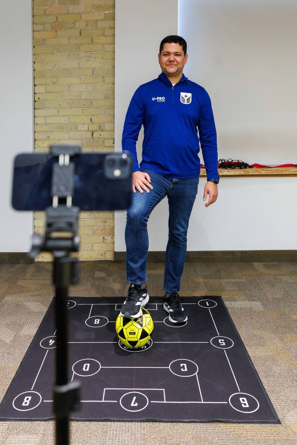 The Winnipeg entrepreneur is the founder and CEO of U-Pro Soccer, a tech company that blends player development, video gaming and artificial intelligence. The company is eyeing a late spring release date for its first products: a lightweight training mat and AI-powered app that allows soccer players to improve their skills any time, anywhere.