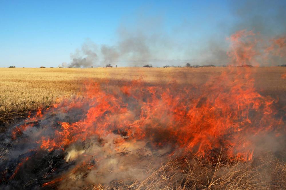 Piles of kochia, an invasive broadleaf weed, burn in a field north of Rivers in 2021.