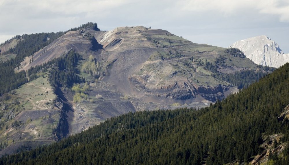 Grassy Mountain, peak to left, and the Grassy Mountain Coal Project are seen north of Blairmore, Alta., Thursday, June 6, 2024. THE CANADIAN PRESS/Jeff McIntosh<