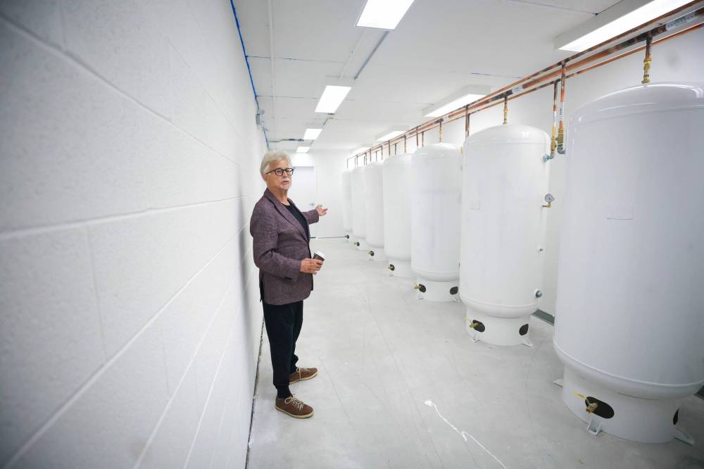 Martin Hiebert shows Prairie Hyberbarics’ oxygen storage room.
