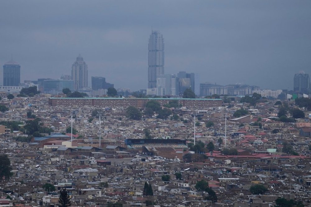 A view of Alexandra township, with the Sandton financial district in the background, in Johannesburg, South Africa, Friday, Nov. 14, 2025. (AP Photo/Themba Hadebe)