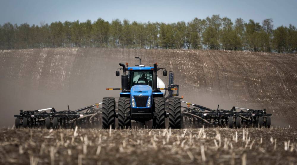 David Reid drives a seeding rig as he plants a wheat crop near Cremona, Alta. Wheat is grown on nearly 50,000 farms in Canada, but fertilizer cost issues this season may alter that number.