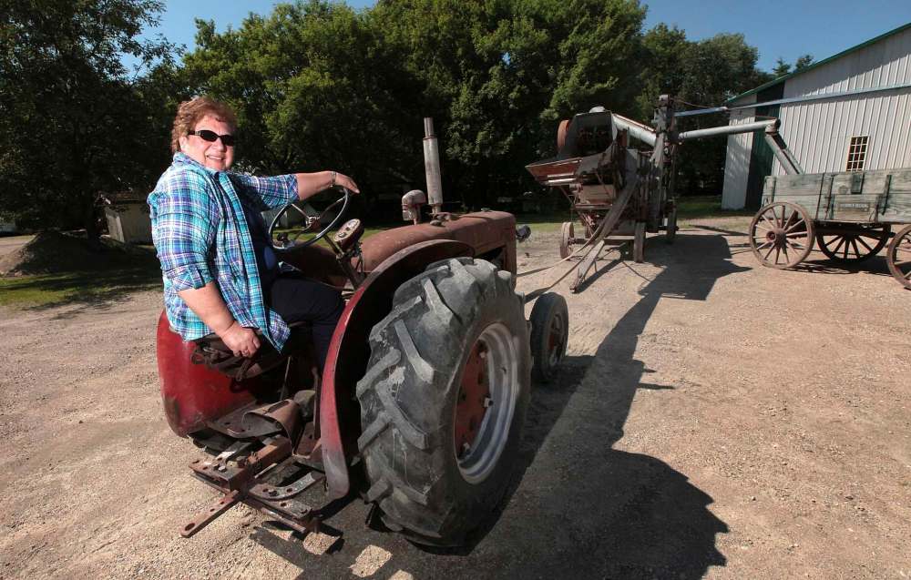 Photos by PHIL HOSSACK / WINNIPEG FREE PRESS Rosemarie Klym at the wheel of a tractor she and her husband, Barry Klym, found recently. The Klym family will take the antique on its trek to the annual Manitoba Threshermen’s Reunion later this month.