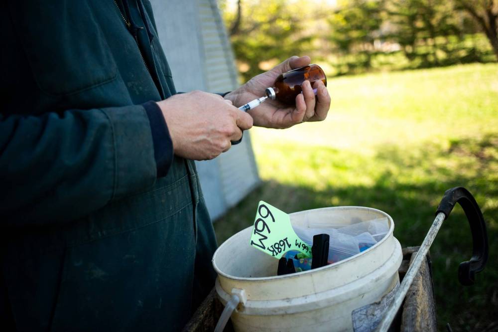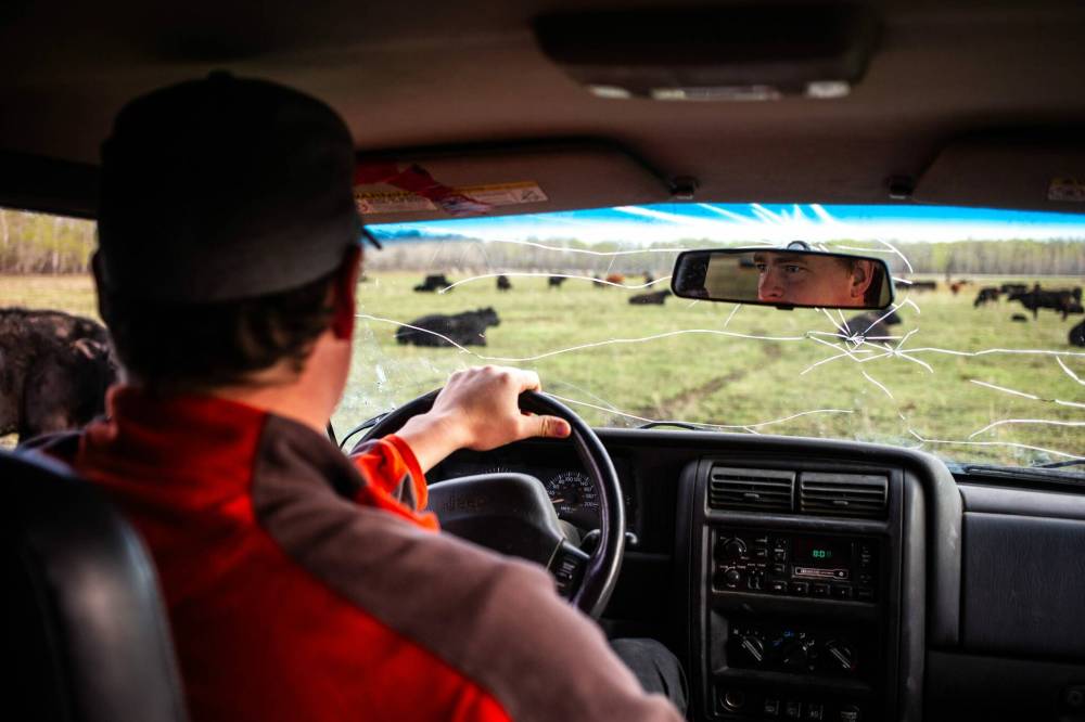 Since switching from winter to spring calving in 2015 (and by breeding for animals that give birth more easily and mother well), their calving season is less intense. Twice a day, they drive an older-model Jeep Cherokee or a quad vehicle around the pasture to check on the herd, stopping to weigh, tag and provide a vitamin and mineral shot to any new additions.