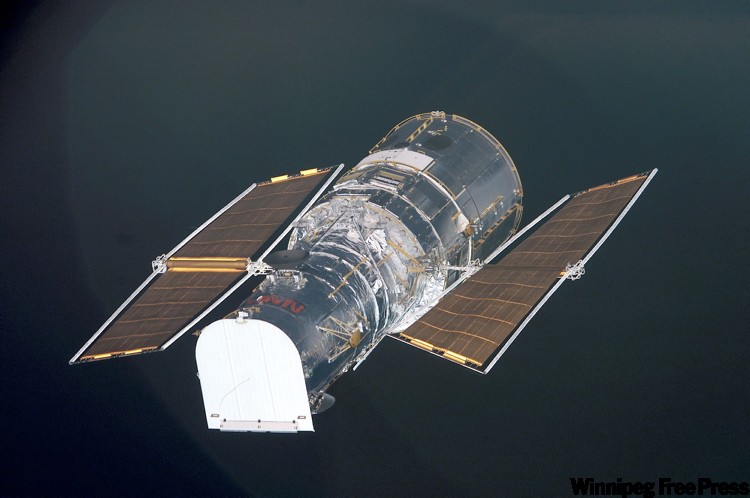 NASA FILE PHOTO The Hubble Space Telescope is seen from Space Shuttle Columbia in 2002, when a shuttle crew visited the telescope to carry out repairs.