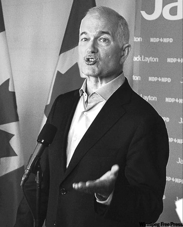 Andrew Vaughan / THE CANADIAN PRESS Jack Layton talks with reporters during a campaign stop in Burnaby, B.C., Saturday.