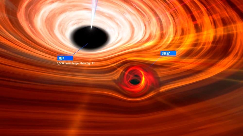 But where gas takes days or weeks to orbit the larger M87*, in the much smaller Sgr A* it completes an orbit in mere minutes.