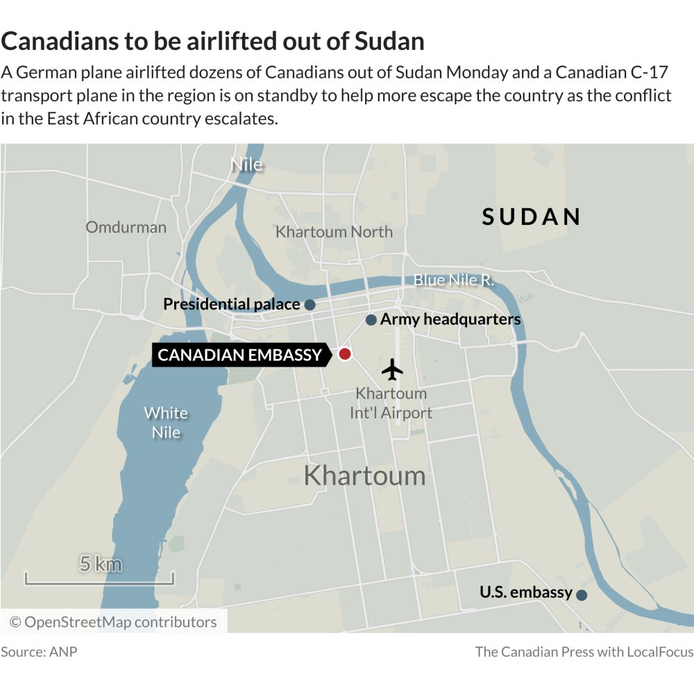 OTTAWA – A Canadian effort is underway to conduct airlifts out of Sudan and two military vessels have arrived off its coast, Prime Minister Justin Trudeau said Tuesday, as the government looked for a fragile ceasefire to help evacuation efforts in the embattled East African country.