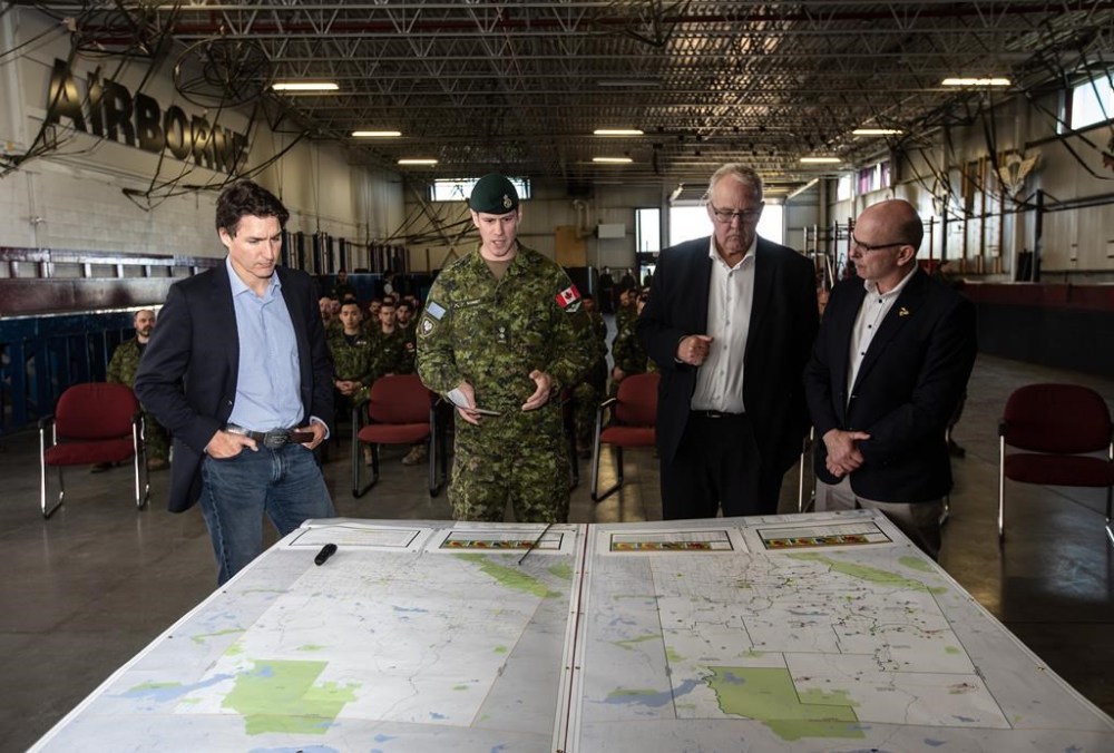 Trudeau was given an overview of the fires at Canadian Forces Base Edmonton and, along with federal Emergency Preparedness Minister Bill Blair, was briefed about the threats from rising temperatures and dryness.