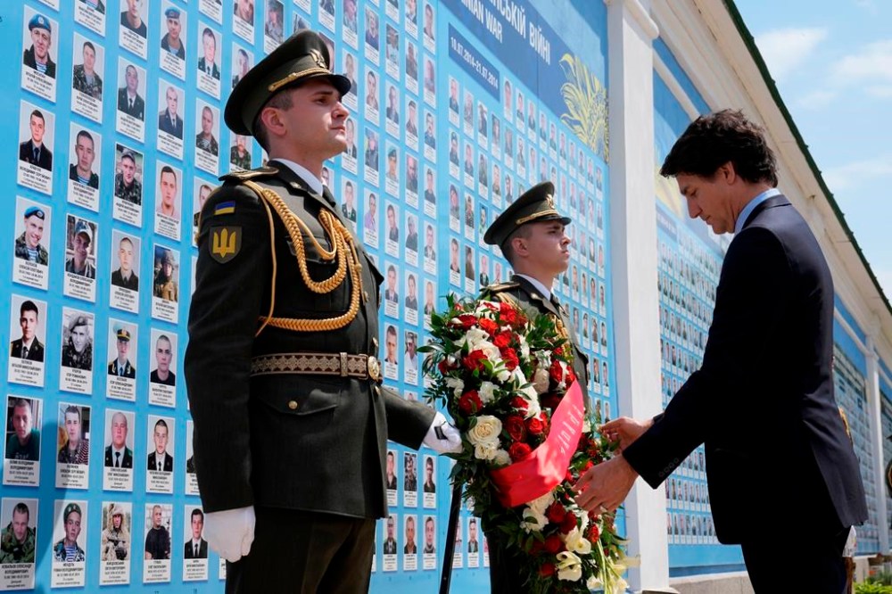 Deputy Prime Minister Chrystia Freeland joined Trudeau on the trip, which began with the laying of a wreath at the Wall of Remembrance at St. Michael’s Golden-Domed Monastery.