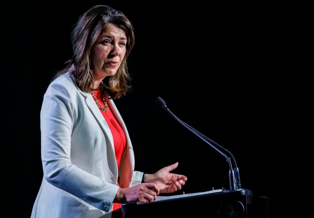 Alberta Premier Danielle Smith speaks to delegates at the Global Energy Show in Calgary on Tuesday, June 13, 2023. THE CANADIAN PRESS/Jeff McIntosh