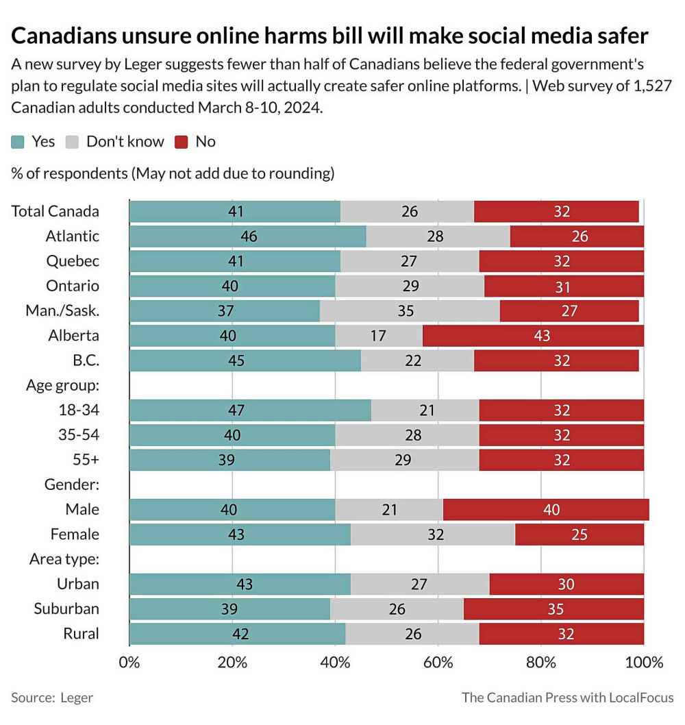Polling firm Leger recently asked Canadians about the Liberal government’s proposed Online Harms Act, which contains a suite of measures meant to make social media platforms safer, particularly for children.