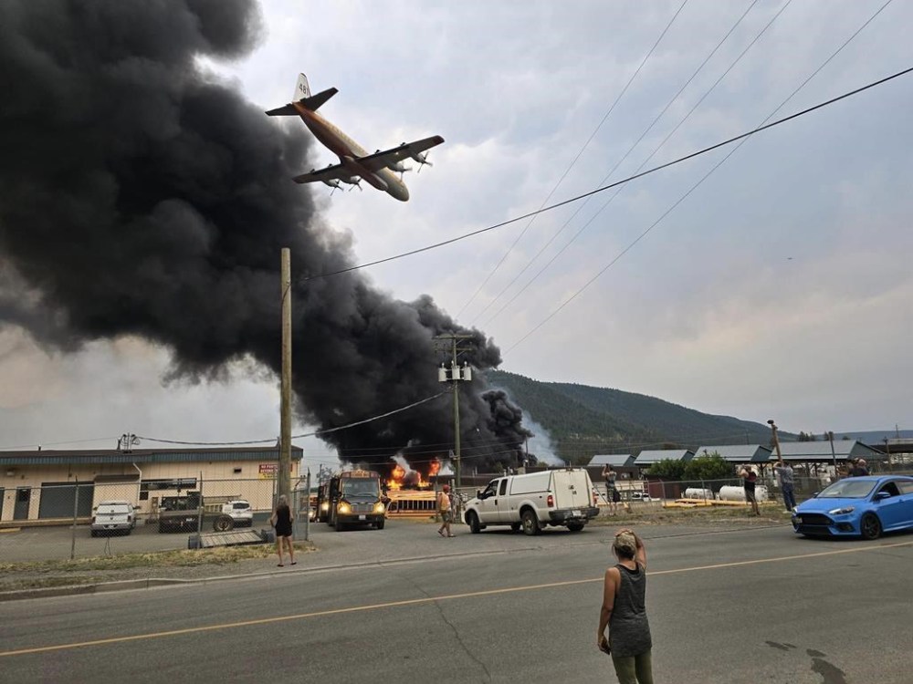 WILLIAMS LAKE, BRITISH COLUMBIA, CANADA – Residents of Williams Lake, B.C., got a front-row look at the wildfire fight to save their community, as water bombers swooped low and dropped red fire retardant, crews sprayed structure fires from ladders and RCMP evacuated homes.