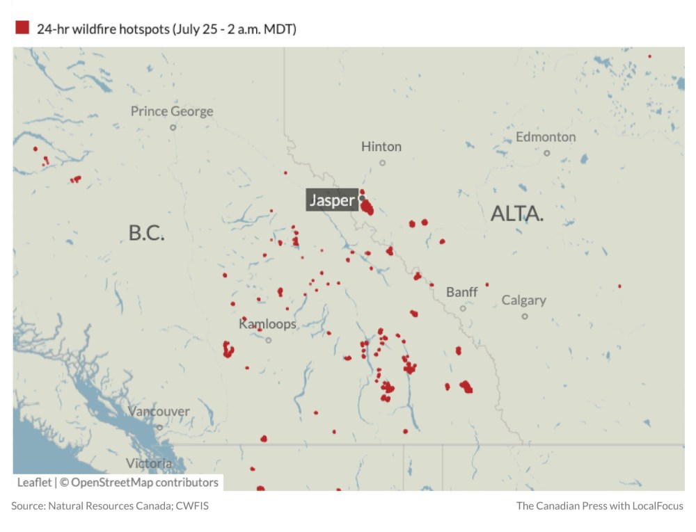 A few hours earlier, all first responders were ordered out of Jasper National Park for their safety and to give fire crews more room to operate.
