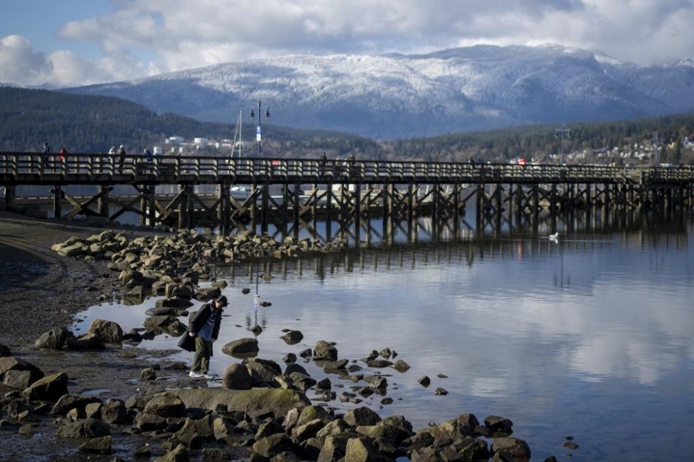 A person splashes in water along the shore at Rocky Point Park in Port Moody, B.C. on Tuesday Mar. 5, 2024. THE CANADIAN PRESS/Ethan Cairns