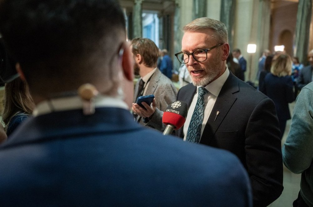 Everett Hindley, Minister of Education, speaks to media following the tabling of the Saskatchewan provincial budget in Regina on Wednesday, March 19, 2025. THE CANADIAN PRESS/Liam Richards
