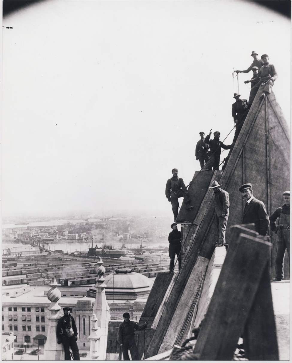 It has more than a passing similarity to New York’s famed The Plaza, built in 1906-07. Related features include the classic base, shaft and capital divisions of the skyscraper; flat facades with slightly projecting, four-bay end pavilions; an arcade of large, segmented windows below a prominent cornice and the composition of the steeply sloped roof.