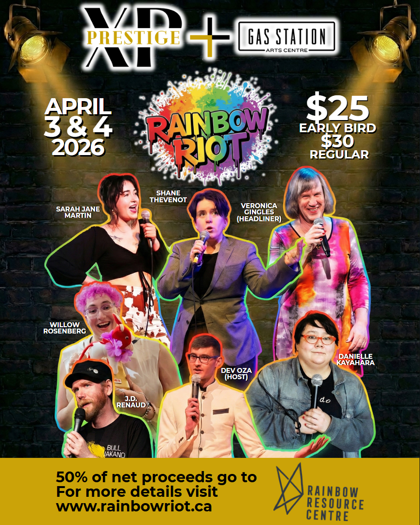 Through Prestige + Purpose, 50% of net profits go to Rainbow Resource Centre. Laugh, connect, and give back.