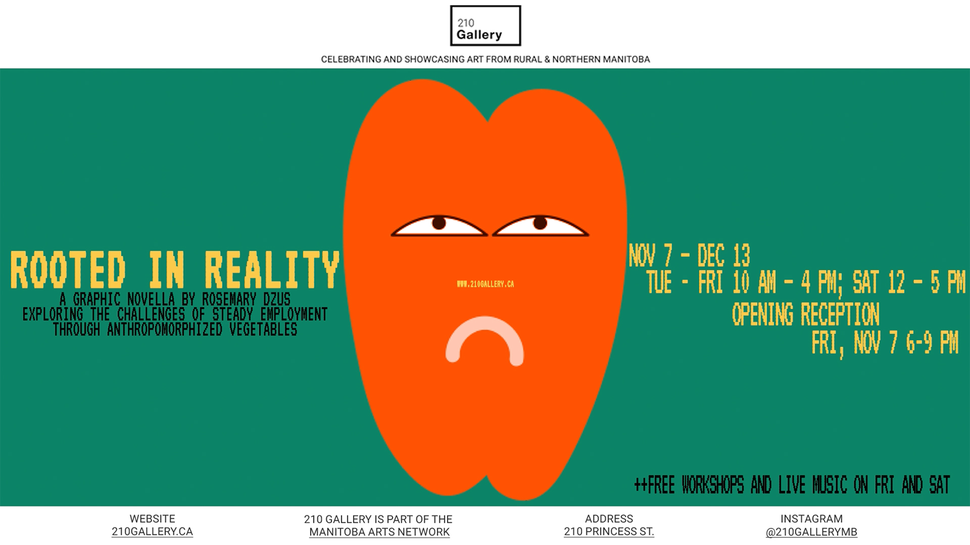What does precarious work look like—not just in headlines or statistics, but in the day-to-day of people living through it? Rooted in Reality is a graphic novella–based exhibition by Rosemary Dzus that illustrates this experience through an unexpected cast of characters: anthropomorphized vegetables. ​ Opening Reception + First Fridays Friday, November 7, 6–9 PM Artist […]