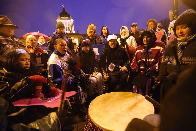 It’s miserable. Still, a small group huddled against the cold has gathered behind the Manitoba legislature, once again, for a chance to be seen and heard. Almost all of them are from families of missing and murdered women — who have gathered for a frigid Sisters in Spirit vigil — many holding home-made banners with the names of their lost loved ones.