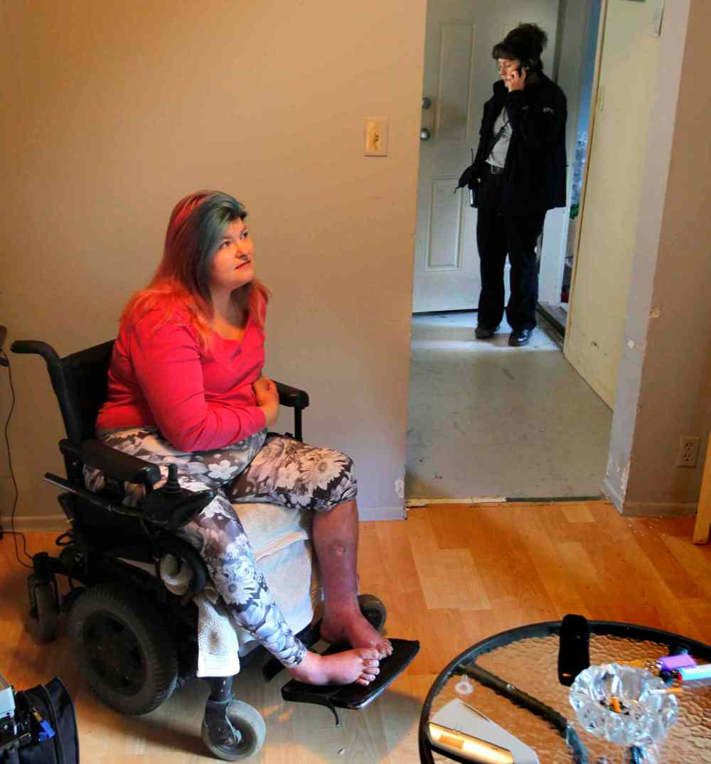 Martin encourages Tammy to go to the hospital, but she is hesitant — she says she’s had such swelling before. She is worried about her daughter, who is at school. She is also worried about being transported in a regular ambulance and having to fend at the hospital without her wheelchair.