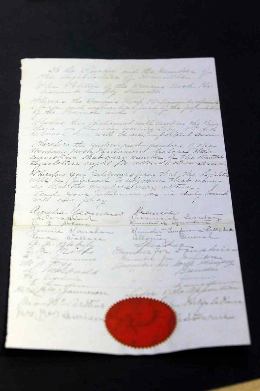 That same month, the Political Equality League staged the women’s mock parliament at the Walker Theatre in Winnipeg, ridiculing the arguments Roblin made against women’s suffrage by turning them around on men. The play, which was quite popular and performed in additional locations, was recounted in a Heritage Minutes TV spot in the 1990s as a pivotal moment in the suffrage era.