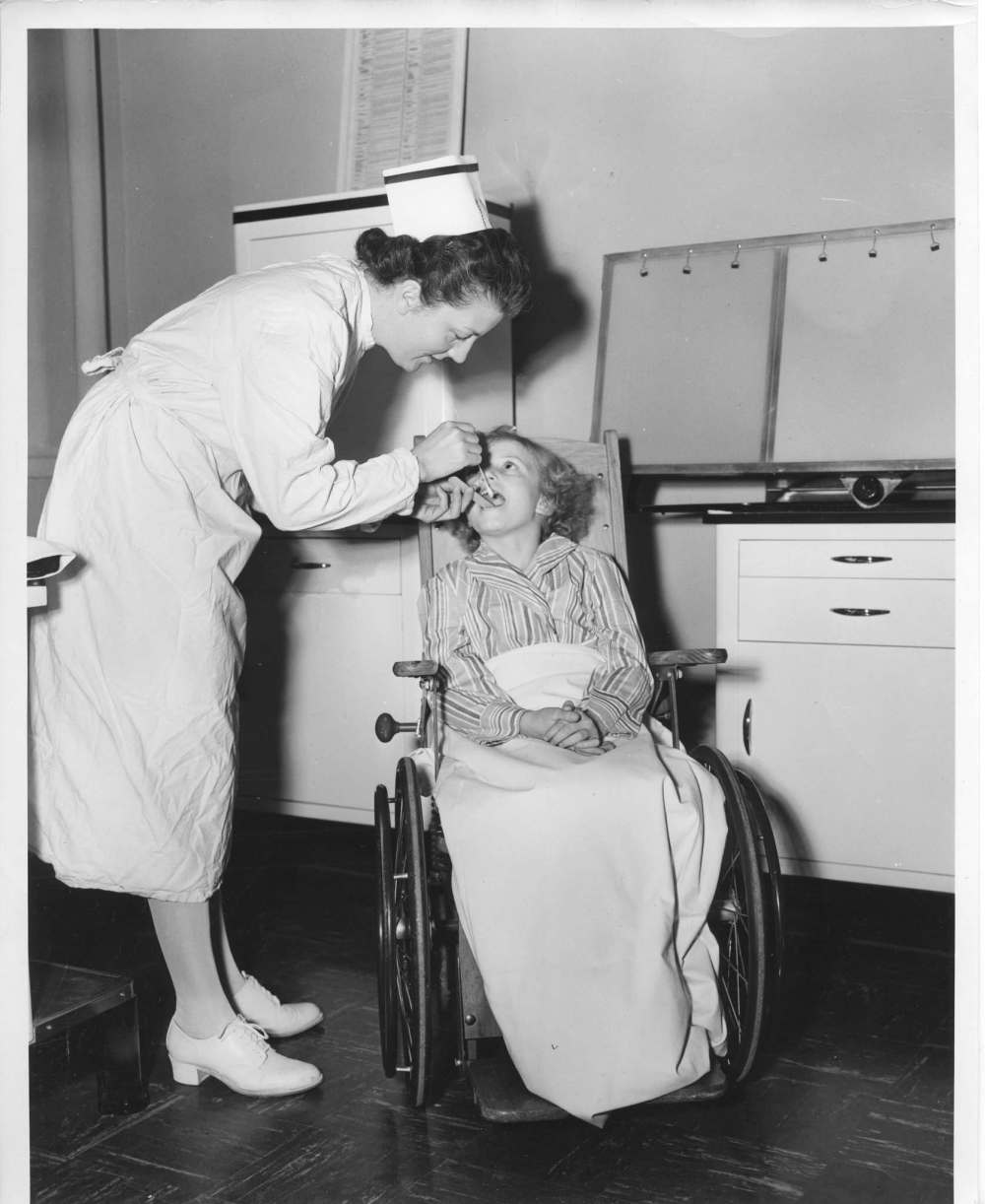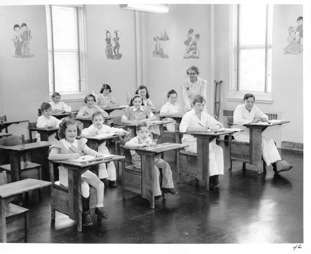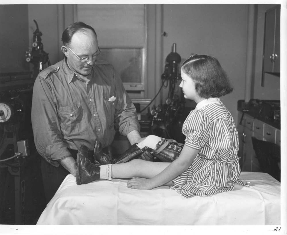 Inside the Shriners Hospital, children were helped by a myriad of skilled specialists. There were orthopedic surgeons performing surgery in operating rooms on the second floor, as well as dentists, nurses, and therapists. There were also people creating braces and prosthetics in workshops.