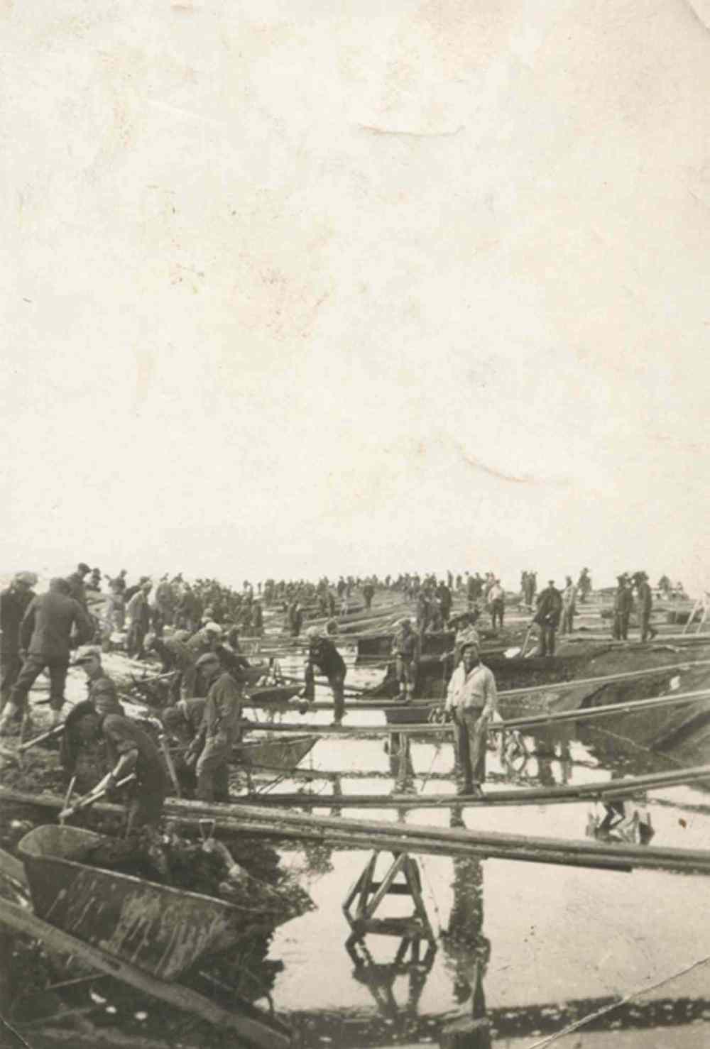 The 14.5-km trench was dug with hand shovels and wheelbarrows. In winter, the relief workers shovelled the streets and railway tracks leading to Winnipeg.