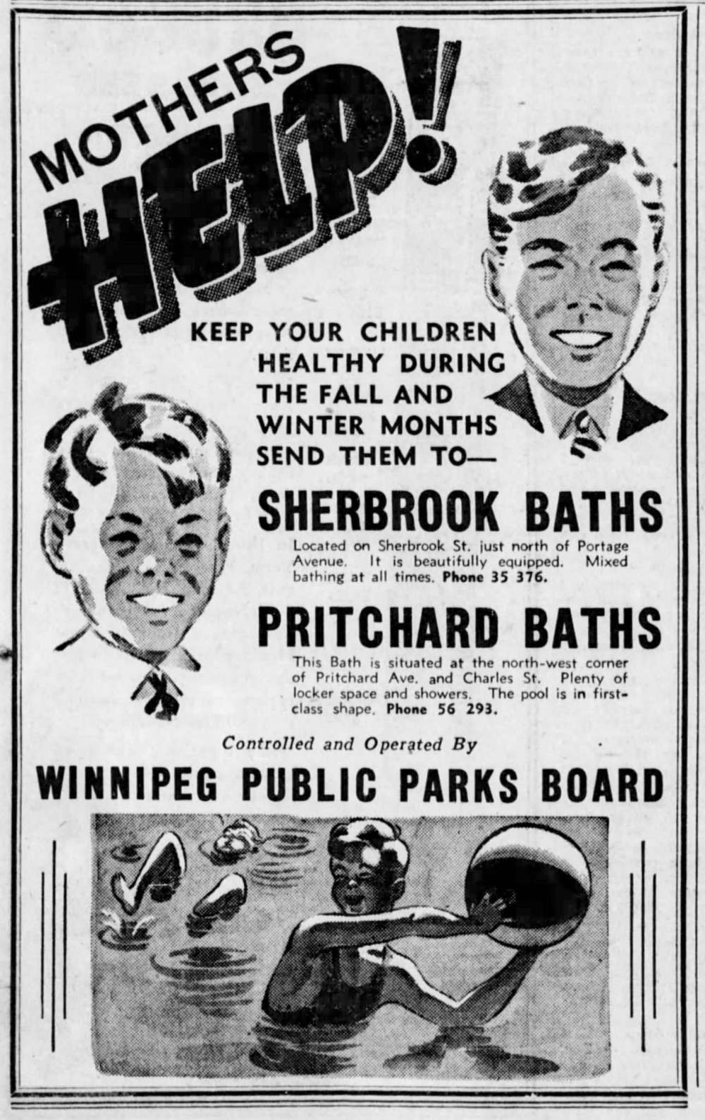 The Winnipeg Tribune, which openly campaigned in favour of a new pool, noted in a November 1929 editorial the loss of the Cornish Baths “means that hundreds and thousands of children now being familiarized with the idea of bathing, washing and public cleanliness, will have this stimulus and suggestion removed from their young lives.”