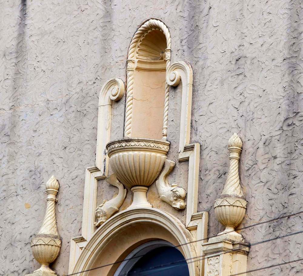 The exterior of the building was equally unique, designed to resemble a Mediterranean villa with wrought iron balconies, colourful stucco finish and red tile roof. The roof line, with its domes, resembled that of a mosque.