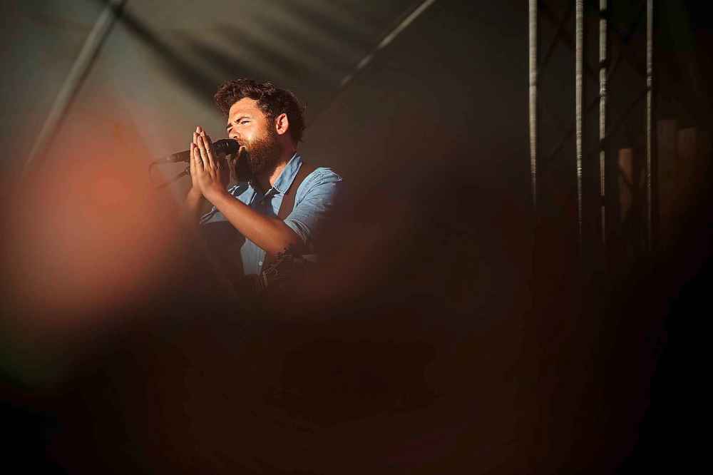 Simon Ward, lead singer of The Strumbellas, sings during their performance on the main stage at the Winnipeg Folk Festival in Birds Hill Provincial Park July 6, 2018.ANDREW RYAN / WINNIPEG FREE PRESS