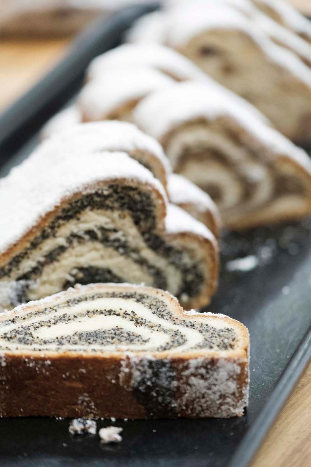 Roughly 1,000 will be of the traditional variety, with the other 400 being two variations: one featuring a not-too-sweet hazelnut paste that’s spread on top of the dough before it’s rolled to create a perfect spiral, and the other featuring poppy seeds.