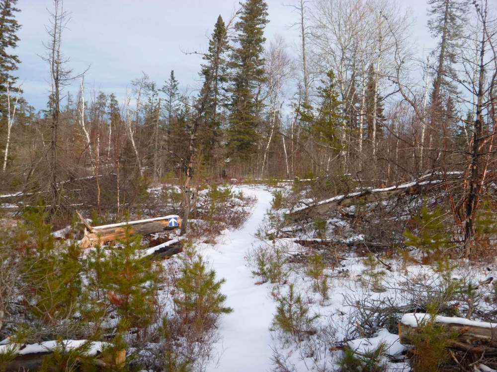 The Mantario trail is a 64-kilometre hiking trail between Caddy Lake and Big Whiteshell Lake. It’s recommended for experienced hikers; a typical backpacker takes about 30 hours over three or four days to complete the trail, but that would be under much more ideal conditions than the snowy and frozen trail McLean hiked.