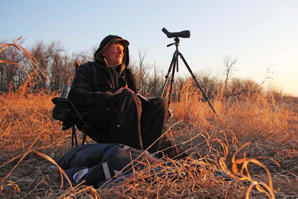 McPherson lowers the binoculars and jots down an entry to today’s list of findings: one sharptailed grouse, one western meadowlark, seven green-winged teals, 26 rusty blackbirds, 28 herring gulls.