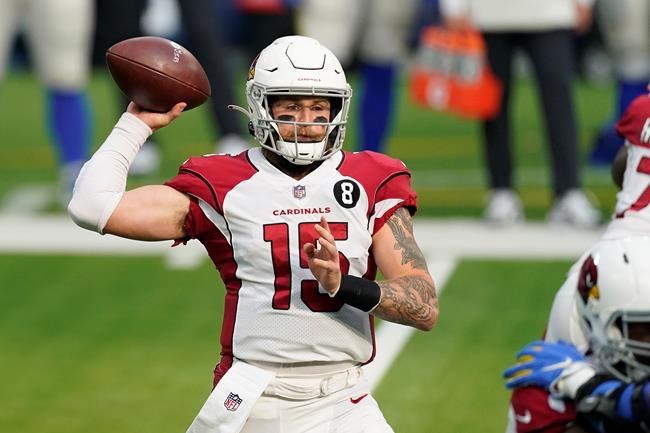 Arizona Cardinals quarterback Chris Streveler (15) passes against the Los Angeles Rams during the first half of an NFL football game in Inglewood, Calif., Sunday, Jan. 3, 2021. THE CANADIAN PRESS/AP, Ashley Landis