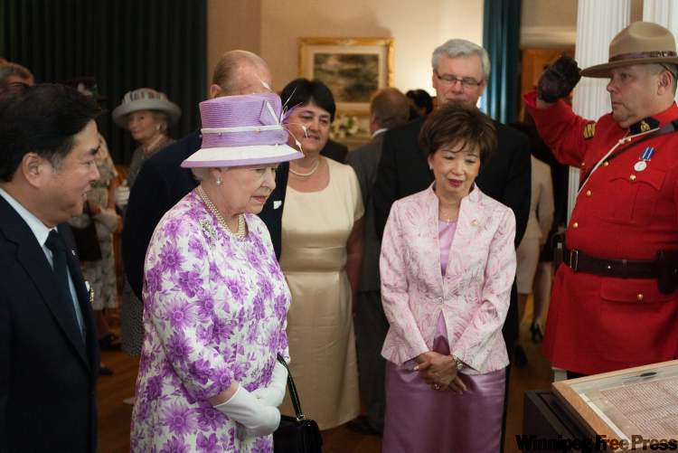 The Queen's Own Cameron Highlanders play as Princess Elizabeth enters the dining room of Hotel Royal Alexandria in Winnipeg, on Oct. 16, 1951 for a luncheon. Following the Princess (front to back) are: His Honour Roland McWilliams, The Duke of Edinburgh, and the Honourable Douglas Campbell, Premier of Manitoba. (The Associated Press files)Queen Elizabeth II visits Winnipeg on July 24, 1959, arriving at the Government House. (Jack Ablett / Winnipeg Free Press files)Queen Elizabeth II watches from Government House in Winnipeg on July 24, 1959. (Jack Ablett / Winnipeg Free Press files)Queen Elizabeth and Prince Philip at the intersection of Portage Avenue and Hargrave Street during their Royal visit in 1959. (Winnipeg Free Press files)Queen Elizabeth II at the grounds of the Manitoba Legislative Building on July 24, 1959. (Jack Ablett / Winnipeg Free Press files)Queen Elizabeth II at the Manitoba Legislative Building on July 24, 1959. (Jack Ablett / Winnipeg Free Press)Queen Elizabeth II in Winnipeg with Premier Duff Roblin (on her right) and Prince Phillip on July 24, 1959. (Jack Ablett / Winnipeg Free Press files)Queen Elizabeth II at the Manitoba Legislative Building on July 24, 1959. (Jack Ablett / Winnipeg Free Press files)Queen Elizabeth II on the grounds of the Manitoba Legislative Building on July 24, 1959. (Jack Ablett / Winnipeg Free Press files)Queen Elizabeth II with Manitoba Premier Duff Roblin and Prince Phillip on July 24, 1959. (Jack Ablett / Winnipeg Free Press files)Winnipeg Blue Bomber Bud Grant greets Queen Elizabeth II during her Royal Tour in 1959.Queen Elizabeth II watches a child dance during her 1952 visit to Winnipeg. (Winnipeg Free Press files)Queen Elizabeth with members of the RCAF in Winnipeg on July 24, 1959. (Jack Ablett / Winnipeg Free Press files)Queen Elizabeth with members of the RCAF in Winnipeg on July 24, 1959. (Jack Ablett / Winnipeg Free Press files)Queen Elizabeth II visits Winnipeg on July 24, 1959. (Jack Ablett / Winnipeg Free Press files)Queen Elizabeth and Nora Bailey at the 1970 backyard gathering south of Carberry, Man. (Courtesy of Brian Bailey)Prince Philip greets members of the Bailey family. (Courtesy of Brian Bailey)A group photo from the July 1970 Royal Family visit to the Bailey family farm. (Courtesy of Brian Bailey)T. Roy and Nora Bailey, at left, chat with Queen Elizabeth, centre, while Princess Anne reclines on a lounger. (Courtesy of Brian Bailey)Queen Elizabeth waves as she departs the Bailey family farm. (Courtesy of Brian Bailey)A Manitoba beaver (right foregrond) peeks out of his box at a July 14, 1970 ceremony in which the Hudson's Bay Company observed an old tradition. Two beavers were presented to Queen Elizabeth by Viscount Amory, governor of the company. Beavers are part of payment traditionally made by the company when a ruling monarch visits the Canadian West. (The Canadian Press files)On July 16, 1970, Queen Elizabeth II and Prince Philip arrive at the Manitoba legislature. (Winnipeg Free Press files)Tree-shaded Broadway Boulevard was lined 20 deep with cheering crowds on July 15, 1970 as Queen Elizabeth II and Prince Philip drove in an open carriage escorted by horsemen of RCMP Musical Ride to the legislature building for Manitoba Centennial Day Ceremonies. (Peter Bregg / The Canadian Press files)On July 16, 1970, Princess Anne and Prince Charles flank their parents, Prince Philip and Queen Elizabeth II, prior to the royal couples' departure from Manitoba. (Dave Johnson / Winnipeg Free Press files)Queen Elizabeth II discusses wood carvings with craftsmen during a walkabout on Oct. 6, 1984 in Dauphin. (Ken Gigliotti / Winnipeg Free Press files)After watching canoeists land on the banks of the Red River in Winnipeg, Oct. 6, 1984, Queen Elizabeth II goes on a walkabout with one of the canoeists dressed as explorer Pierre LaVerendrye into LaVerendrye Park. (Nick Didlick / The Canadian Press files)Prime Minister Brian Mulroney smiles while his wife Mila curtsies for Queen Elizabeth II as she arrived for a state dinner in Winnipeg on Oct. 6, 1984. (Fred Chartrand / The Canadian Press files)Queen Elizabeth II and Prince Philip react as they watch a demonstration during ceremonies in Winnipeg on Oct. 8, 2002. (Adrian Wyld / The Canadian Press files)Queen Elizabeth II talks with members of the Manitoba Corgi Association, including Donna Cameron with corgi named Neena (centre), during a visit to Winnipeg, on Oct. 8, 2002. (Adrian Wyld / The Canadian Press files)Crowds squeeze together to get a glimpse of the Queen getting on a boat on the Assiniboine River at The Forks on Oct. 8, 2002. (Ruth Bonneville / Winnipeg Free Press files)A child comes out of the crowd to present Queen Elizabeth with one of many flower bouquets at The Forks on Oct. 8, 2002. (Ken Gigliotti / Winnipeg Free Press files)The Queen and The Duke of Edinburgh depart The Forks by water taxi on Oct. 8, 2002. The water taxi broke down and a second boat was used to travel to Tache Quay. (Marc Gallant / Winnipeg Free Press files)The crowd on Memorial Boulevard waits for the arrival of Queen Elizabeth II and the Duke of Edinburgh at the Manitoba Legislative Building on Oct. 8, 2002. (Wayne Glowacki / Winnipeg Free Press files)Queen Elizabeth II and the Duke of Edinburgh arrive at the Manitoba Legislative Building and are greeted by thousands as the royal couple take in the entertainment provided by entertainers including Loreena McKennitt on Oct. 8, 2002. The Queen also officially rededicated the Golden Boy. (Wayne Glowacki / Winnipeg Free Press files)Queen Elizabeth II, Ed Schreyer, Loreena Mckennitt, actress Nia Vardalos, and student Stacey MacKenzie at the head table at a dinner in the Rotunda on Oct. 8, 2002. (Wayne Glowacki / Winnipeg Free Press files)The refurbished statue of the Golden Boy is surrounded by fireworks, during Queen Elizabeth II's visit to Winnipeg, on Oct. 8, 2022. (Jeff De Booy / Winnipeg Free Press files)The refurbished statue of the Golden Boy