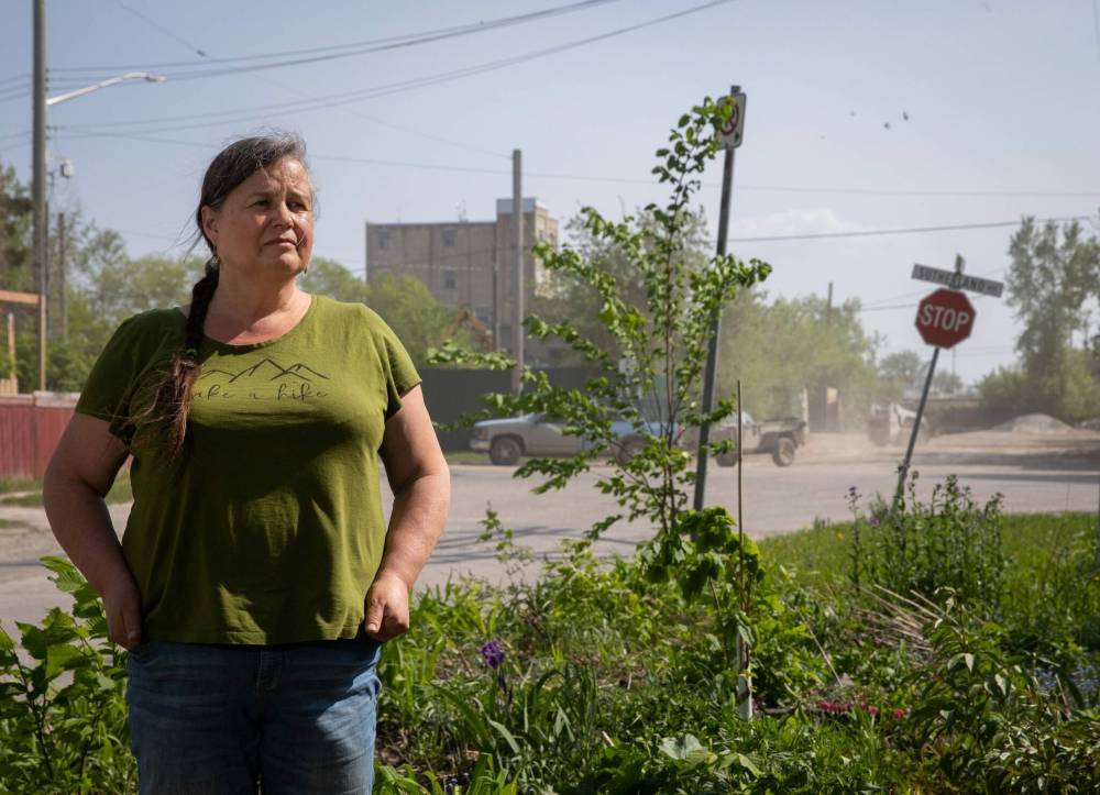 Flynn, a full-time high school art teacher who volunteers as acting chair of the Point Douglas Residents Committee, says the noise and dust on this day is mild. Usually, she explains, there’s a lineup of cars idling in the scrapyard driveway, the constant beep of large trucks backing into the lot and nearby trains belching diesel smoke. It’s hot this time of year, but she only opens her windows at night, after the scrapyard shuts down, to avoid the stench and dust filling her 125-year-old home during the day.