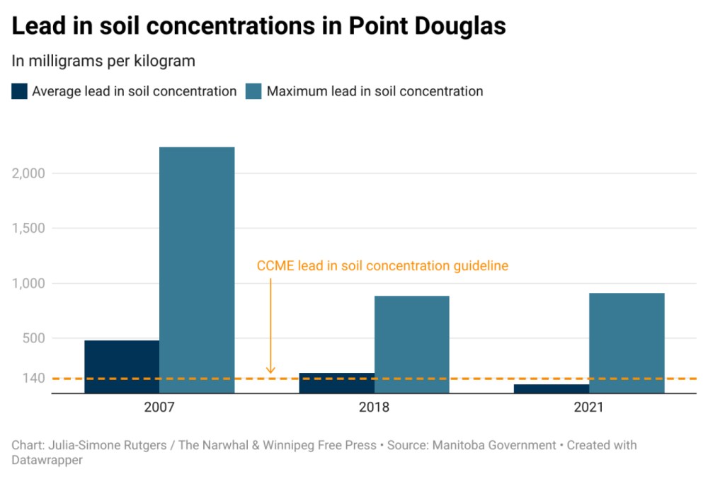The ensuing controversy prompted additional testing by the government. North Point Douglas still returned several samples with lead concentrations far above healthy levels — the highest of any neighbourhood tested.