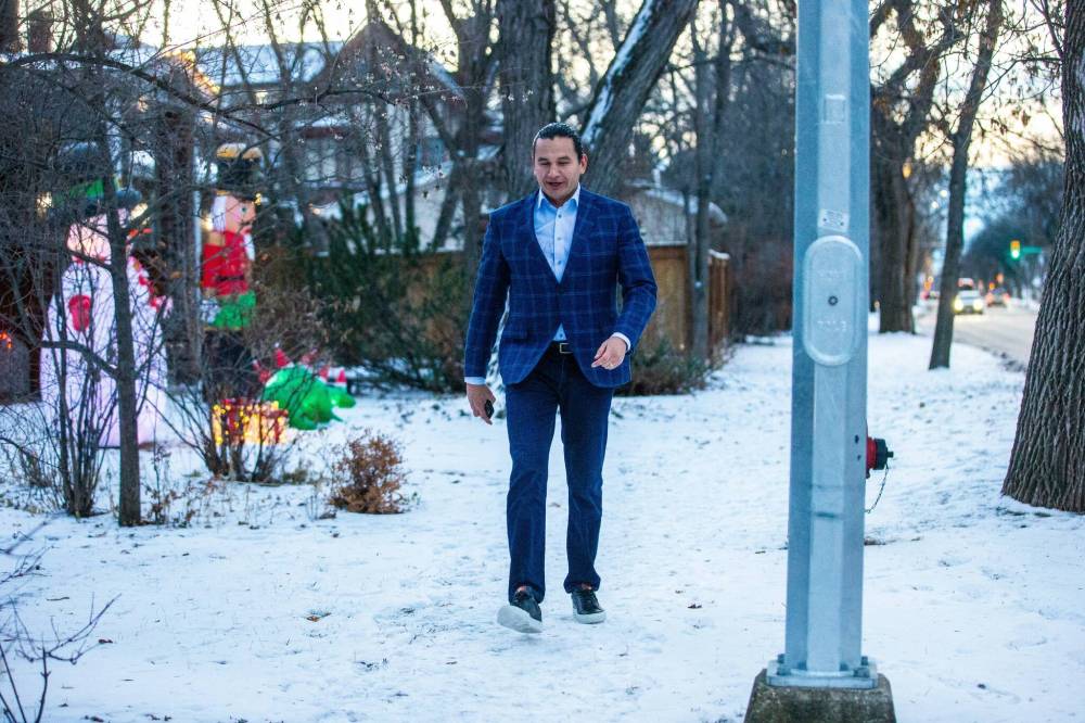 Wab Kinew leaves his house before sunrise. (Mikaela MacKenzie / Winnipeg Free Press)