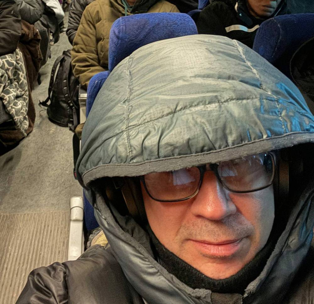 His educated guess was a correct one; it was bitterly cold as the wheels on the bus went round and round on the overnight ride.
