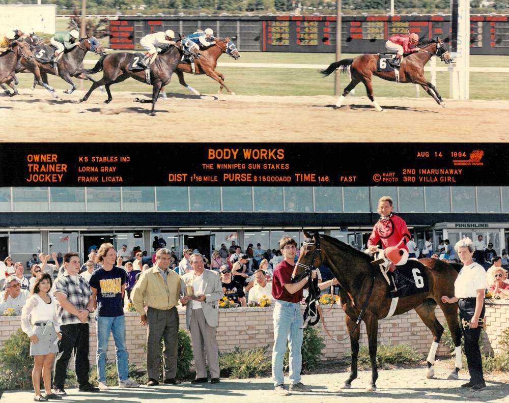 From 1991 to 1995, Body Works was a major force in Manitoba racing, winning 13 stakes races, compiling a record of 18-11-6 for earnings of $252,755, and earning multiple championships.